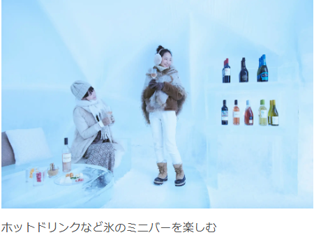 含まれるもの :氷のホテル宿泊体験1日、氷の露天風呂、氷のミニバー、シュラフ、ルームウエア