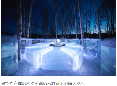 2 星空のもとで温泉を堪能する「氷の露天風呂」