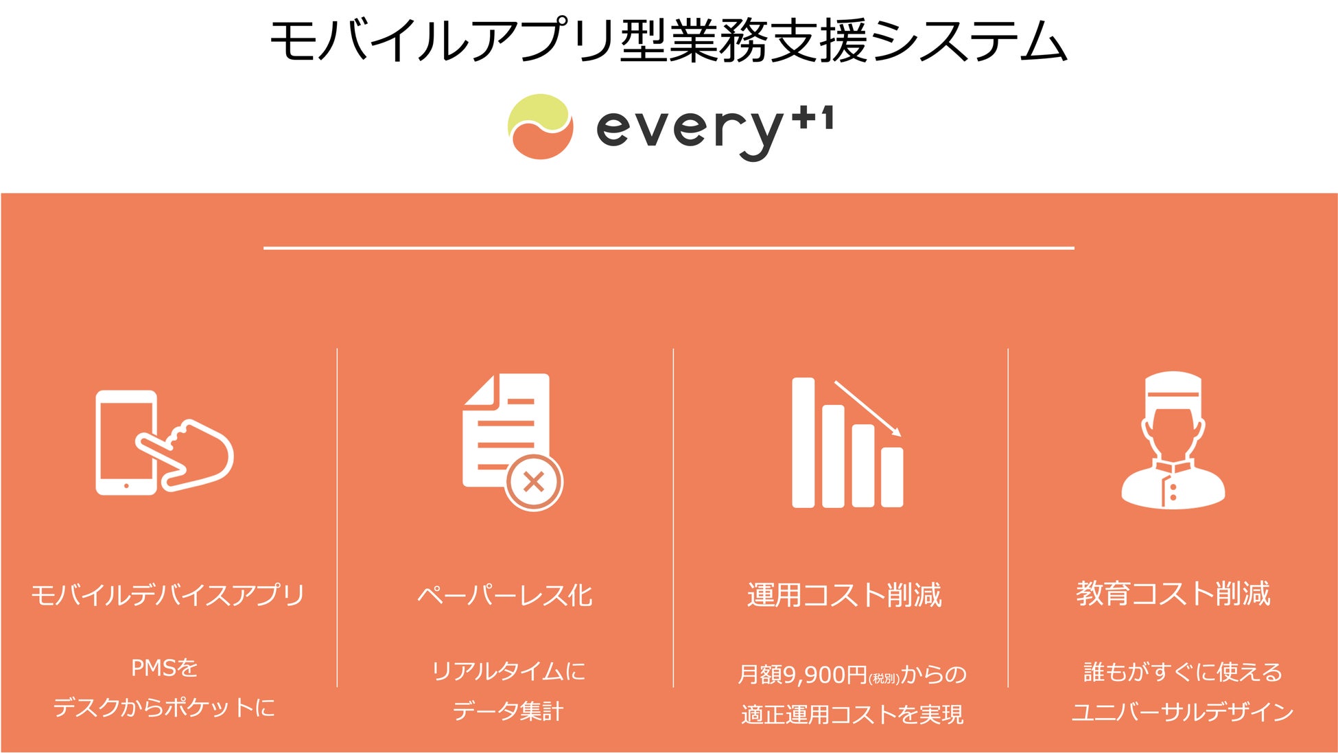 そこで「every+1(エブリワン)」では、本当に必要な機能を厳選し、シンプルなシステムをゼロベースで開発いたしました。