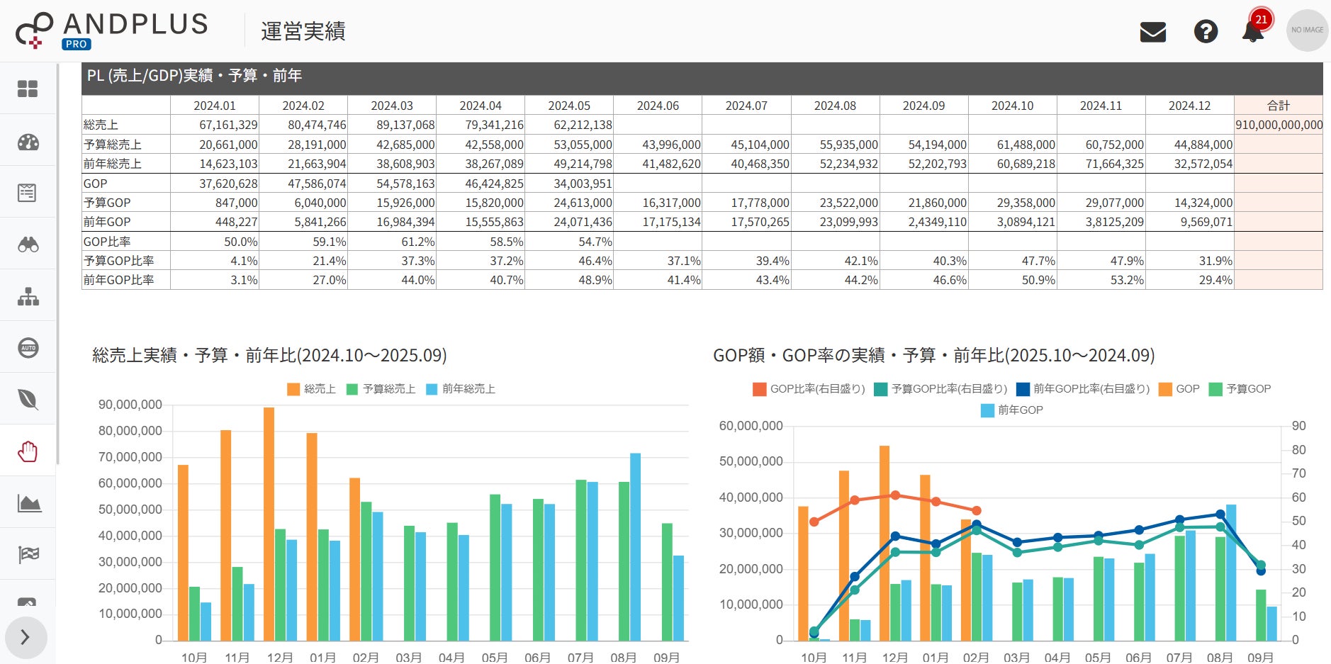 月次分析データをANDPLUS上で分析、データ作成が可能に。PLなどの経営指標についてもANDPLUSで確認可能となり、月末月初のデータ・資料作成の時間短縮に。