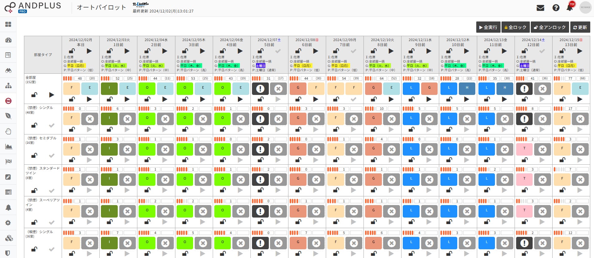 ※オートパイロットとは15分毎にサイトコントローラーから在庫情報を取得し、予め設定したルールに基づき需要増減を判断し適切な料金ランクを提示。提示された料金ランクをANDPLUSよりサイトコントローラーへ指示し料金ランク変更を即座に実行する機能。