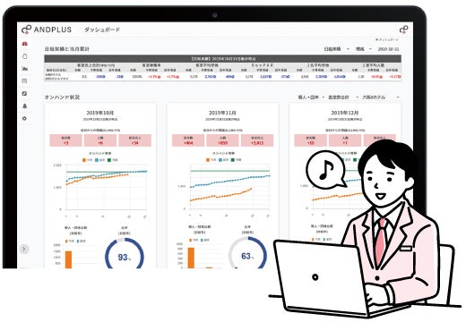 全ホテルのオンハンド状況や売上動向がすぐにわかる。本部と現場双方での業務効率化が進む