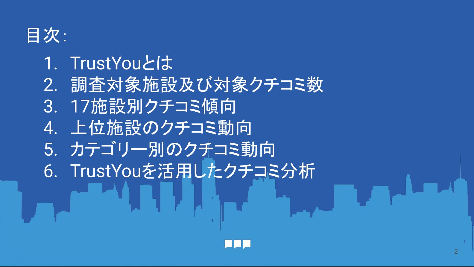 TrustYouは、世界の宿泊施設に関するクチコミ(レビュー)の約90%を自動収集し、データ化、分析、可視化をし、宿泊施設様や旅行業界のパートナー様に提供しています。本リリースの調査結果・画像をご利用いただく際は、引用元として「TrustYou株式会社」の公式サイトURL( https://www.trustyou.com/ja/)へのリンク設置をお願い致します。