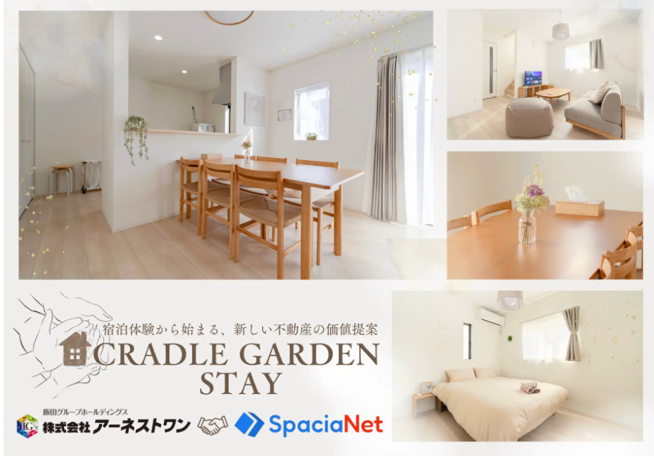 株式会社SpaciaNet Japan(本社:大阪市北区、代表取締役:青木 渉)と株式会社アーネストワン(本社:東京都西東京市、代表取締役:松林 重行)は、アーネストワンの分譲戸建住宅「クレイドルガーデン」を活用し、「暮らしを体験できる民泊」をコンセプトにした新しいかたちの無人宿泊施設「クレイドルガーデンステイ」を、東京都と千葉県に合計5棟同時にオープンいたします。なお、本施設の運営には、SpaciaNet Japanが提供する無人運営ソリューション「AirXpress EX」 を導入しています。