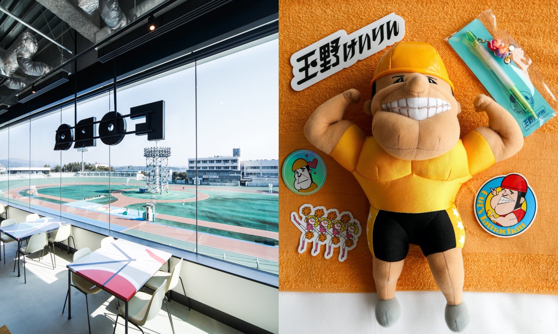 メインスタンドで使われていた数百席分の座席から座板部分を再生。ホテルのエントランスにある大型看板やロビーのオブジェなど多くの人の目に触れる場所に使用しています。他にも、レース用自転車部品を素材に、インテリアとして再生。様々な廃材をロビーやレストランの照明器具やテーブル、客室のインテリアとして活用しています。さらに、競輪や自転車をモチーフにした、ポップなデザインのオリジナルグッズを多数展開。備品やグッズなども細部にまでこだわっています。旅の記念やお土産としてはもちろん、瀬戸内の島旅や普段使いにもおすすめのグッズです。