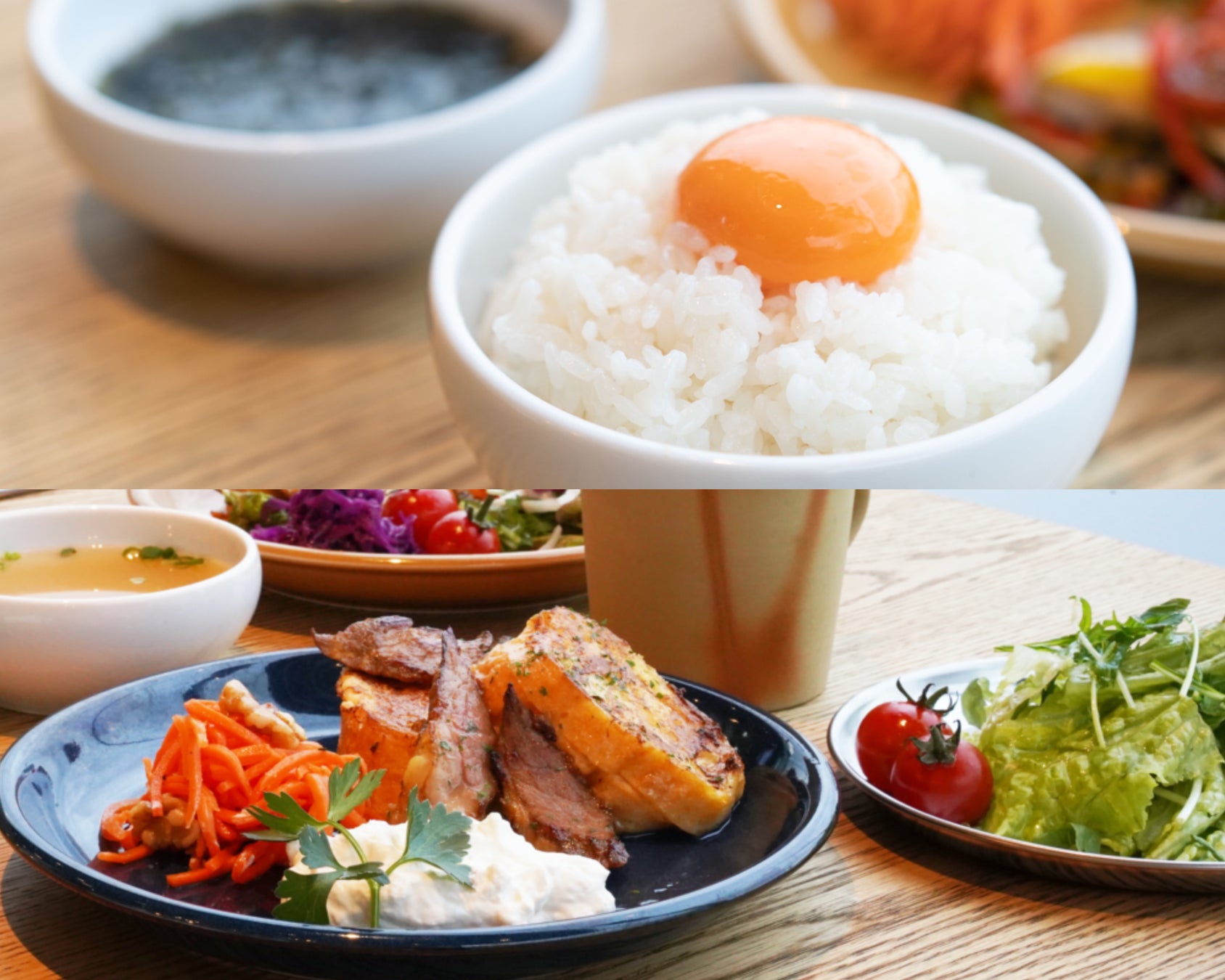 朝食のメインは、地元の卵を使用した焼き立てフレンチトースト、または新鮮な卵かけご飯をご用意しております。その日の気分に合わせてお楽しみください。