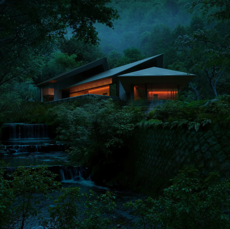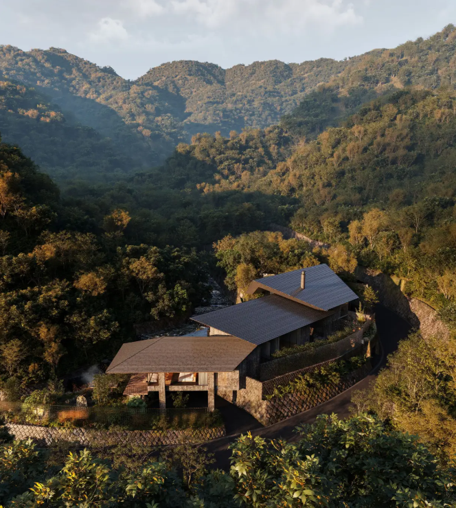 湯河原という地名の由来になったと言われる藤木川のせせらぎと、山林の木々のささやきに包まれる、街の気配から離れた場所。都心から90分の温泉地・奥湯河原に、計2棟の建築を展開します。1棟はまるごと所有できるヴィラ「YUAMI」、もう1棟は複数のスイートルームで構成されます。