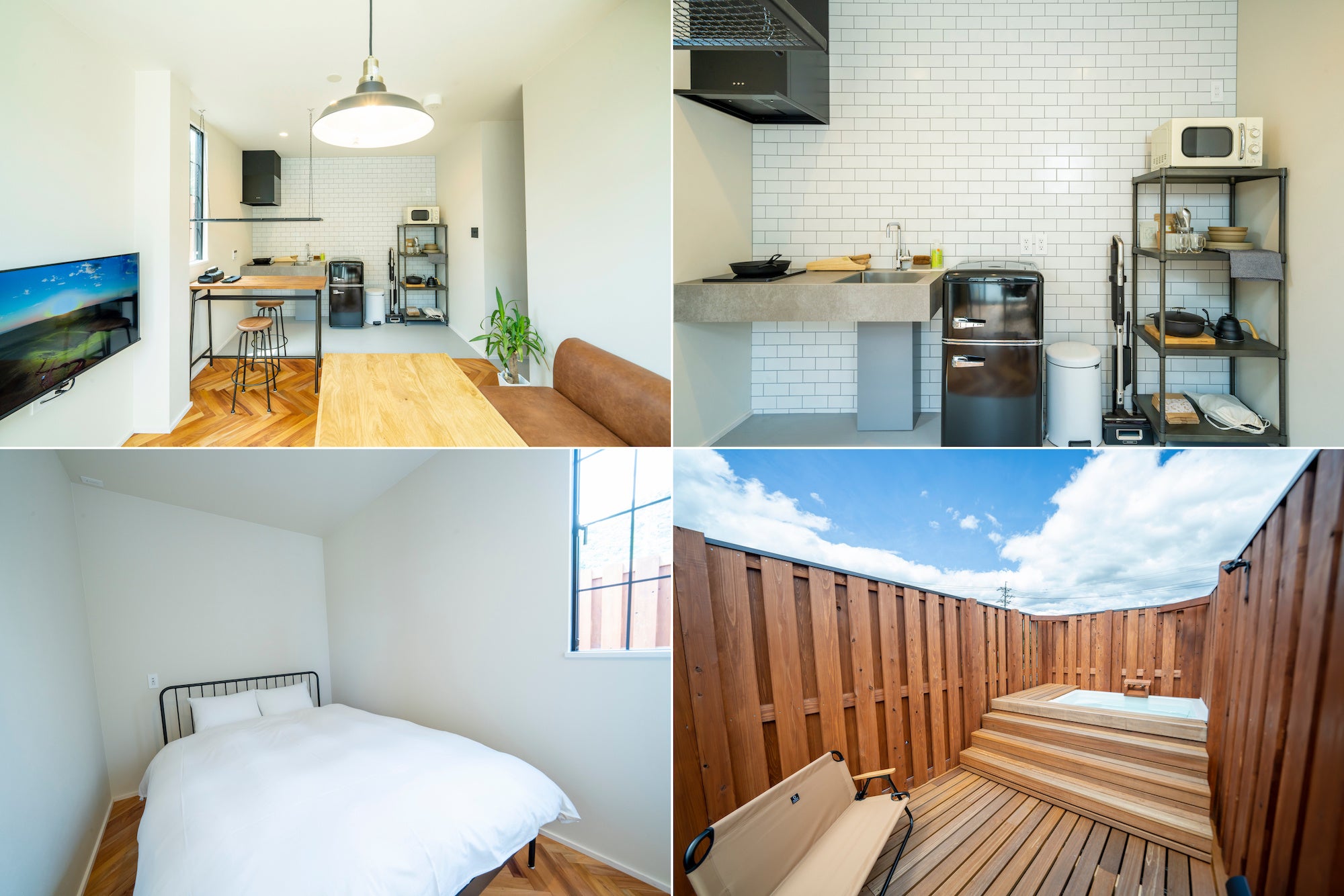 ミドルサイズのお部屋はダブルベッドルーム1つを備え、パートナーとの宿泊にぴったり。キッチンや露天風呂が付いた空間で自宅のようにくつろぐ旅は、いつもとは一味違う体験になるはずです。