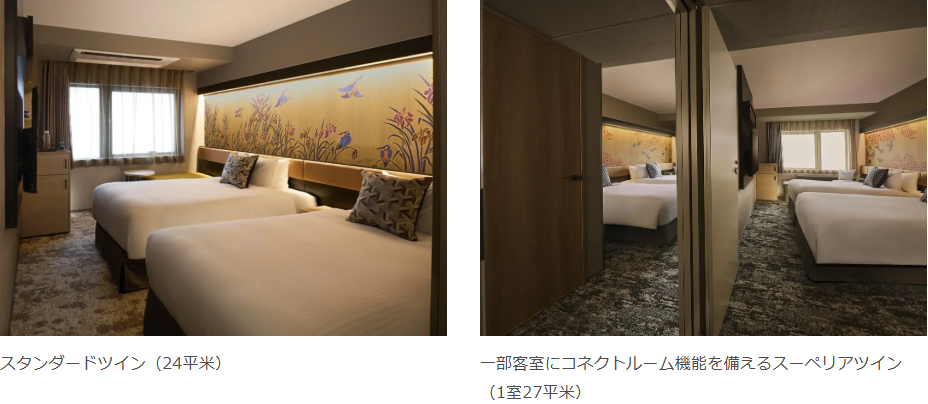 ツイン131室(24.6~27平米)、 ダブル 67室(24.6~27平米)、 ユニバーサルルーム 2室(40.5平米)