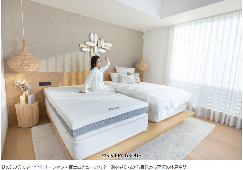 観光名所・鎌倉からわずか10分、富士山と海を望む圧倒的な静寂を誇るリビエラ逗子マリーナ。本プランでは、この「海の静寂」という自然環境と科学的な睡眠テクノロジーを融合させ、血行促進などの効果が期待できる「ReFa VITALWEAR」や、睡眠学と人間工学に基づき一人ひとりに最適な寝具環境を提案する「EMOORの診断メソッド」をホテル初導入しました。客室での睡眠に留まらず、広大なマリーナ全体を活用した滞在プログラムを通じて、深刻化する現代人の「睡眠課題」に向き合い、人間本来の眠りを取り戻すスリープツーリズム(睡眠を目的とした旅)を提供します。株式会社リビエラリゾート(本社:神奈川県逗子市/代表取締役社長 小林昭雄)は、都心から約60分という距離にありながら、約900本のヤシ並木と富士山・水平線を望むリビエラ逗子マリーナで展開するスモールラグジュアリーホテル『MALIBU HOTEL(以下マリブホテル)』において、現代人の深刻な睡眠課題に向き合い、眠りの質を追求した宿泊プラン「SLEEP WELL STAY(スリープウェルステイ)」を2026年2月5日(木)より開始しました。