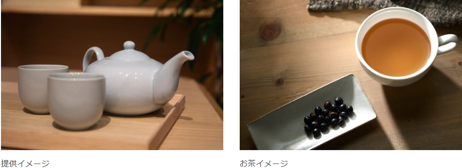 1階のフロント・ラウンジでは、無印良品の3種類のお茶の中から、香りや茶葉の色を確かめてお選びいただき、選んだお茶をその場で淹れて提供するおもてなしサービスを行います。