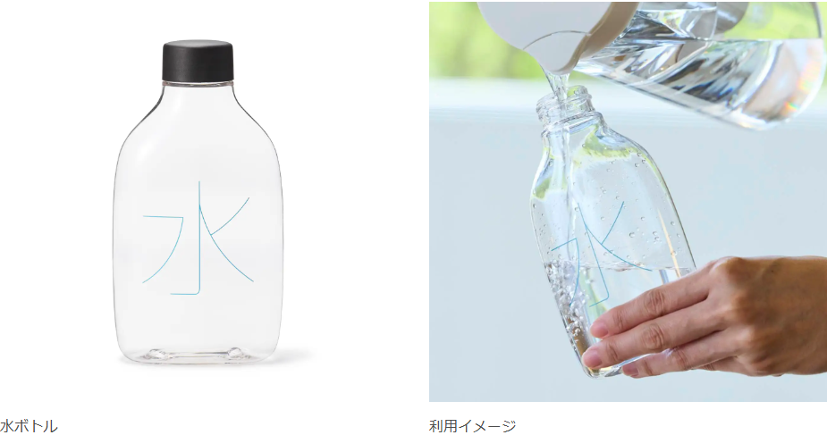宿泊者にはマイボトルとして無印良品の「自分で詰める水のボトル」をお渡しし、館内の給水スポットで必要な分だけ水を補充して利用いただけます。使い捨て容器に頼らず、必要な分を満たして使うという、小さな習慣を旅の時間にも取り入れています。