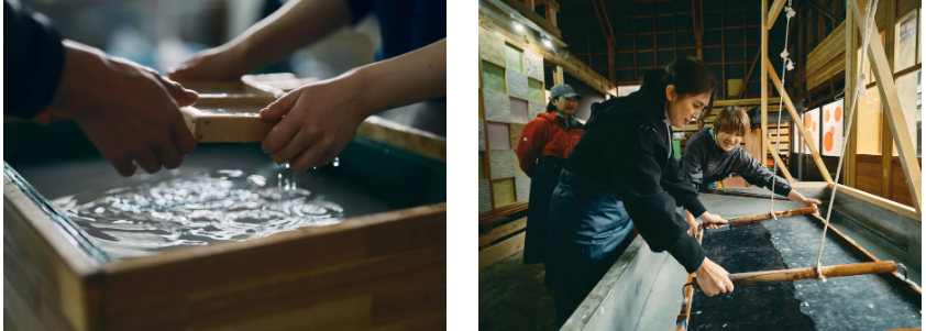 滞在中は、周辺の和紙工房を訪れて職人の技に触れながら、本格的な和紙漉き体験にご参加いただけます。また、産地を巡った体験をお持ち帰りできるよう、お宿では和綴じなどのワークショップをお楽しみいただけます。