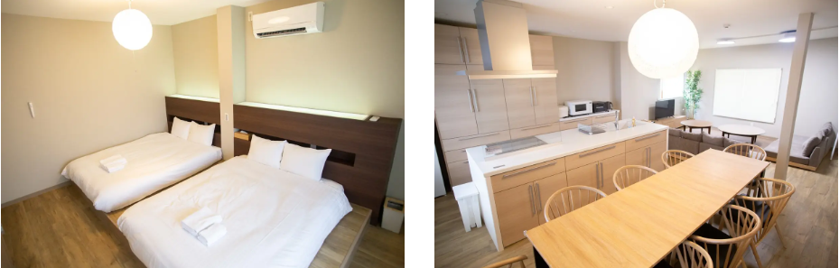 客室にはダブルベッド2台の寝室が2部屋あり、最大8名まで宿泊可能です。家族やグループでの旅行、長期滞在など、多彩な利用シーンを想定しています。