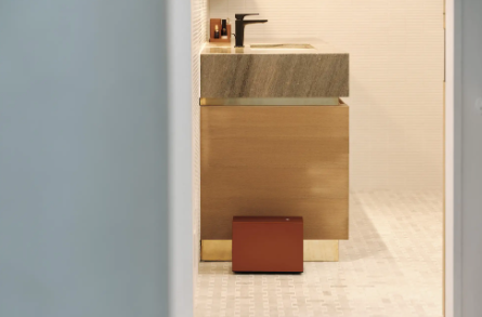 プロダクトデザイナー柴田文江氏による、シンプルで丁寧なデザインです。金属の重厚感に軽やかなフットデザインを組み合わせ、ミニマルでありながら精緻な造形を実現しました。カラーは、あらゆる空間に調和する洗練された4色展開。ボトルキャップを置ける構造をはじめ、内部の見えない部分にまで配慮し、デザイン性と実用性を両立しています。