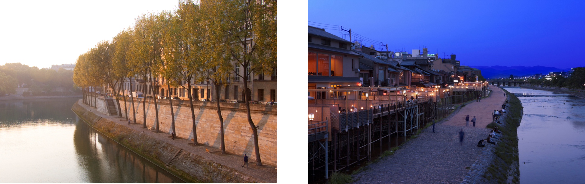 京都市とパリは姉妹都市提携を結んでおり、パリから寄贈された「京都広場銘板」や「ガス灯」が京都市役所前の広場にあります。ガス灯は、パリのレプュブリック広場にあるのと同じものだそうです。また南禅寺の近くにあり、船を運航するために敷設された傾斜鉄道の跡地の「蹴上インクライン」は、かつてパリ市内を運航していた環状鉄道路線「La Petite Ceinture(プティット・サンチュール)」の廃線跡に似ており、桜が綺麗な、穴場のスポットになっています。食べ物も美味しく、独特なスタイルを楽しむことができ、路地裏に入れば、昔にタイムスリップしたみたいな建物が並んでいるなど、京都とパリの似ているところを発見できるでしょう。