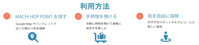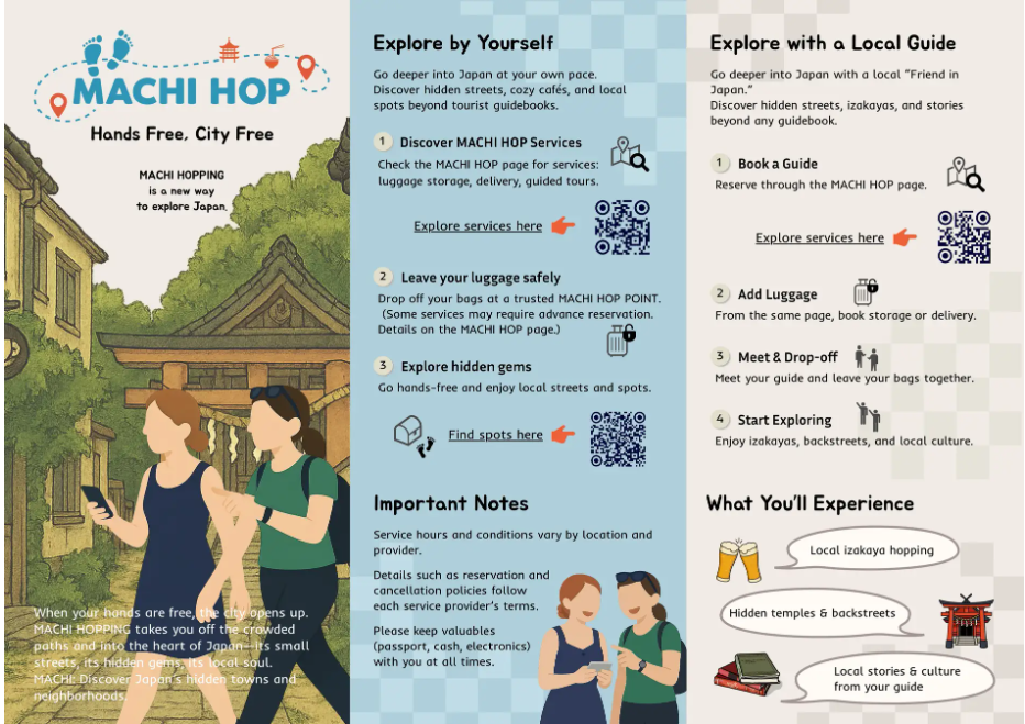 ・Google Map連動の「MACHI HOP MAP」(パンプレット+QR)を手荷物預かり所「MACHI HOP POINT」で配布。